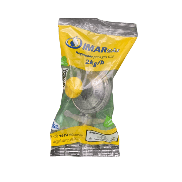 Os reguladores IMARGÁS, para uso doméstico ou semi-profissional, com vazão de 2kg/h são indicados para utilização predial e doméstica, em instalações com mangueira de PVC e manômetro. Embalagem – Saco Plástico